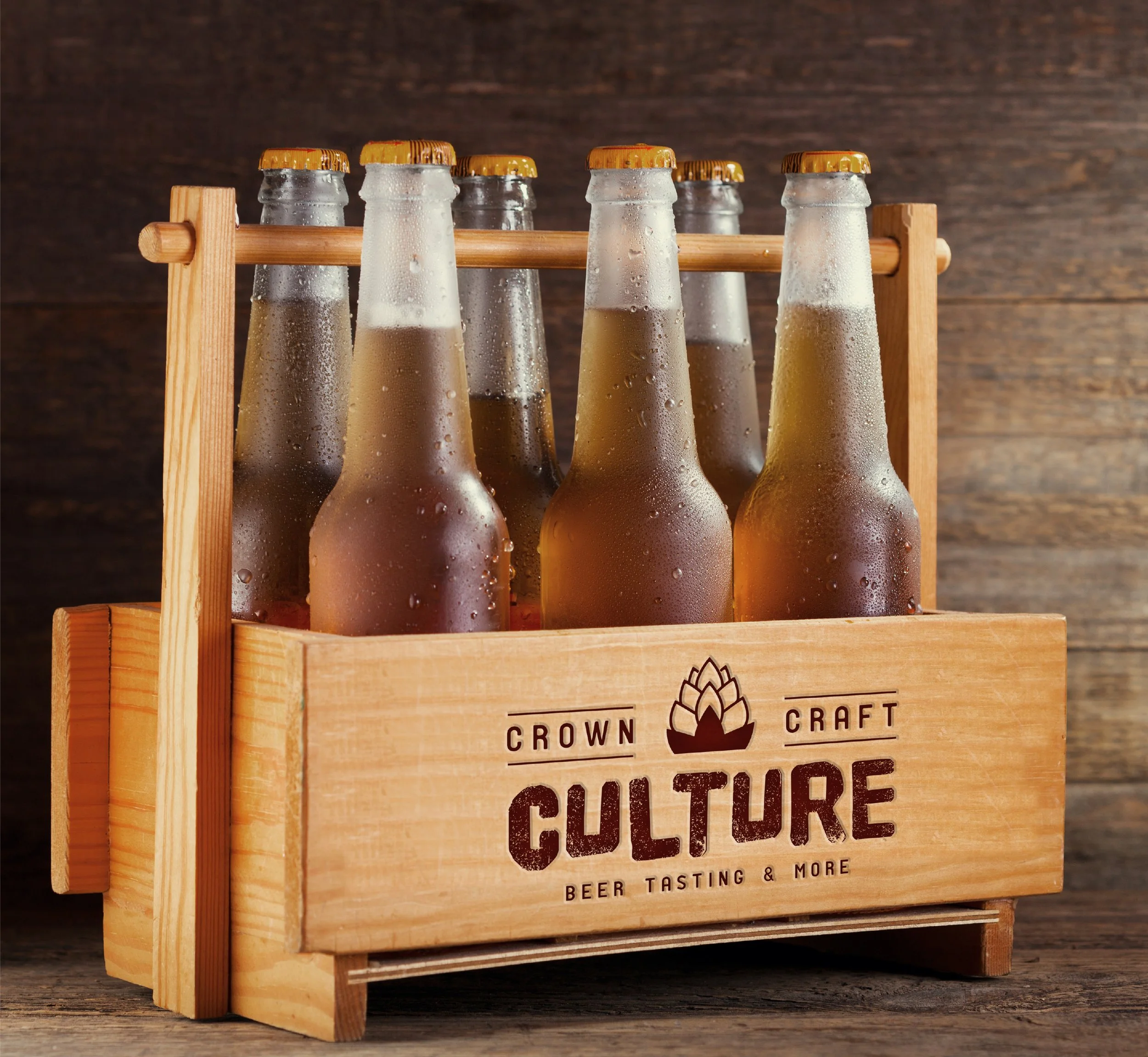 We developed the name Crown, Craft, Culture to capture the essence of his work: the foam crown of a perfect pour, the craftsmanship of brewing, and the lifestyle surrounding beer appreciation. The logo combined a hop cone with a crown, creating a distinct symbol that ties directly to the beer world while emphasizing the artisanal and cultural roots of his approach.