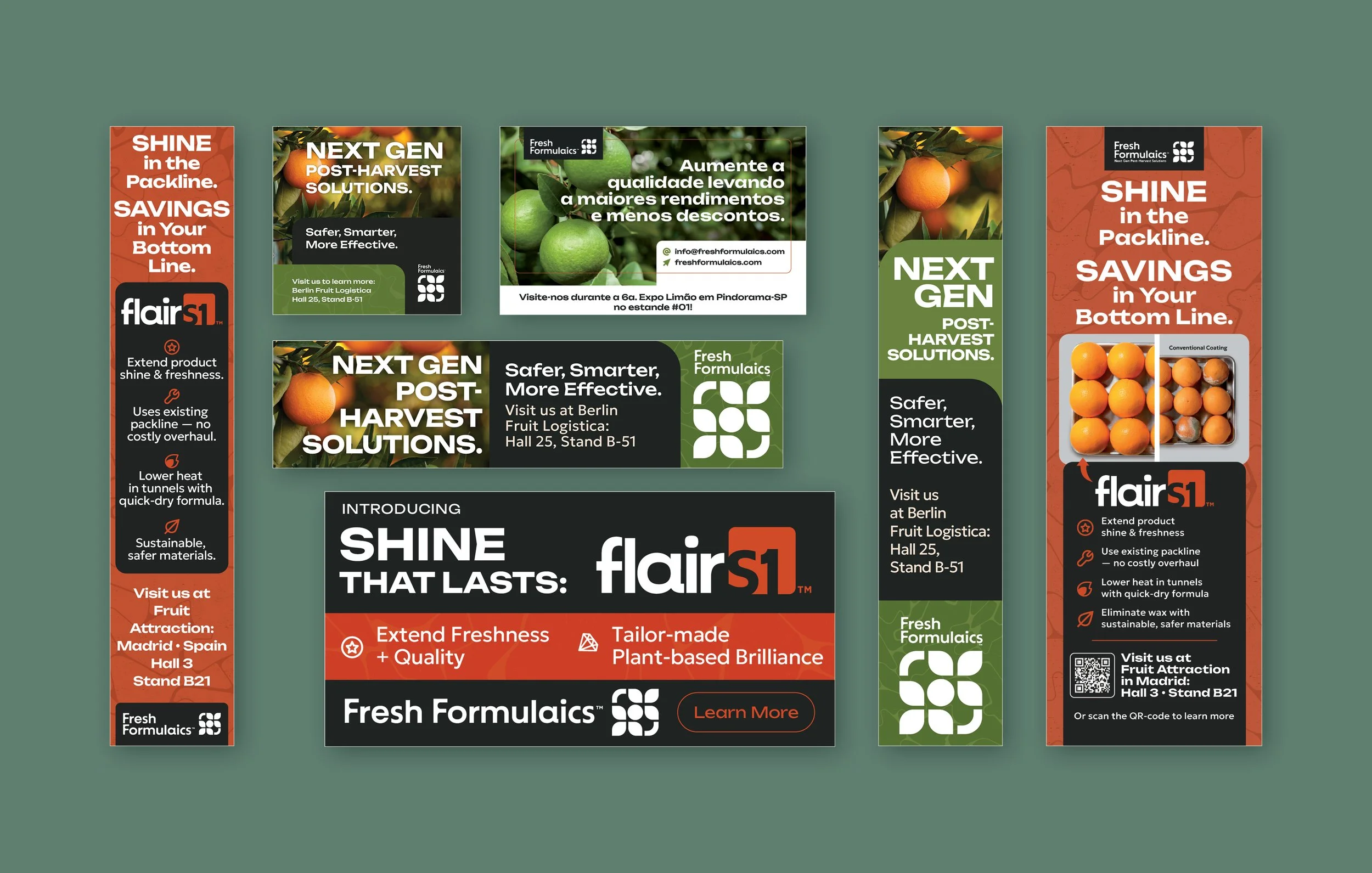 Ahead of its official launch at Berlin Fruit Logistica, Fresh Formulaics needed a complete suite of promotional and sales materials to establish its market presence. While their agency partner delivered the logo, brand positioning, and creative direction, our task was to translate this foundation into tangible launch assets.